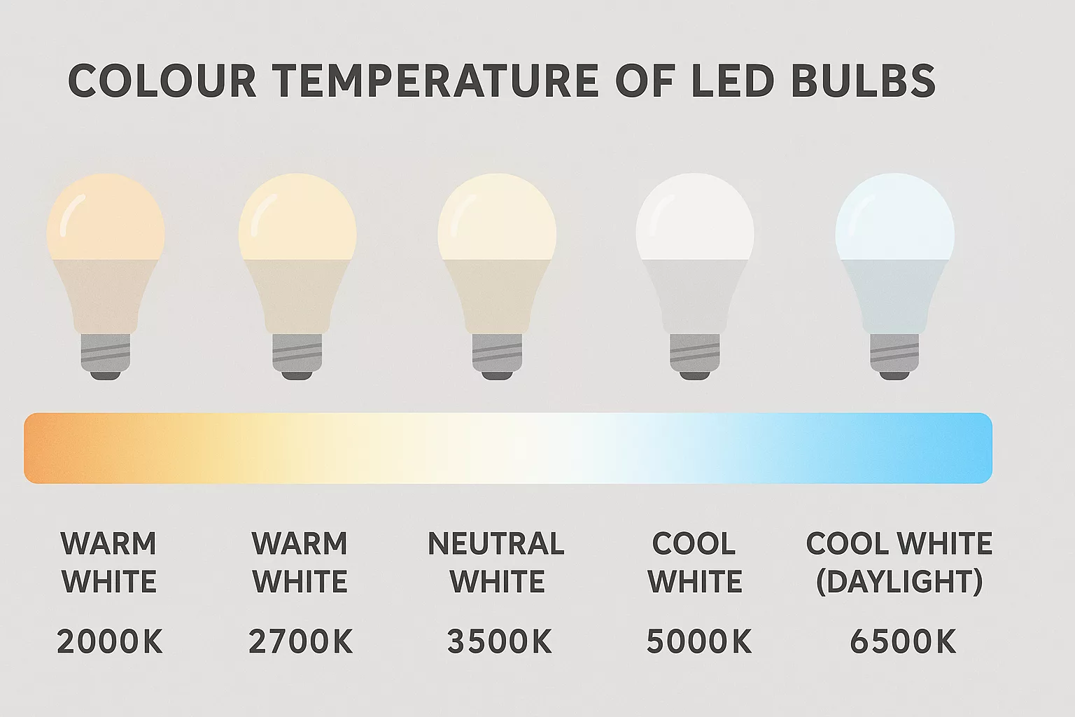 Typically, the lower the colour temperature the warmer the light, and the higher the temperature the more bluish the light will be.